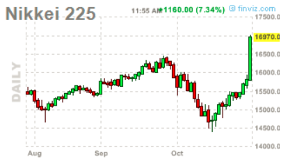 In a surprise move today, the Bank of Japan announced further quantitative easing, dominated by long-term Japanese government bonds. The BoJ also announced it and would triple annual purchases of exchange traded funds and property investment trusts.